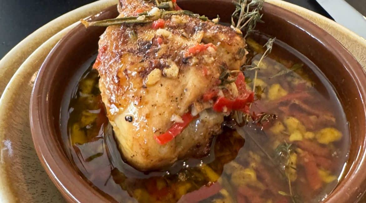 Die kulinarische Reise über die iberische Halbinsel hat bei uns ein neues Highlight hinzugewonnen: Köstliche Hähnchenschenkel, die in einer aromatischen Marinade mit frischen Kräutern und Gewürzen goldbraun angebraten und mit Knoblauch und Chilischoten gegart werden.